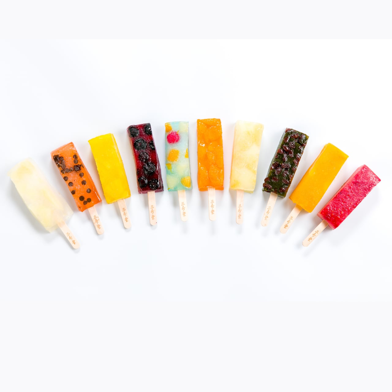 みかん、白桃、抹茶、湘南ブルー(サイダー)、いちご、マンゴー、和梨、スイカ、パイナップル、ブルーベリー