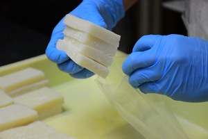 お餅を搗いた当日。まだやわらかいうちに真空し急速冷凍をしているので、解凍するとお餅が「ふにゃっと」柔らかく、搗き立てのお餅が味わえます。